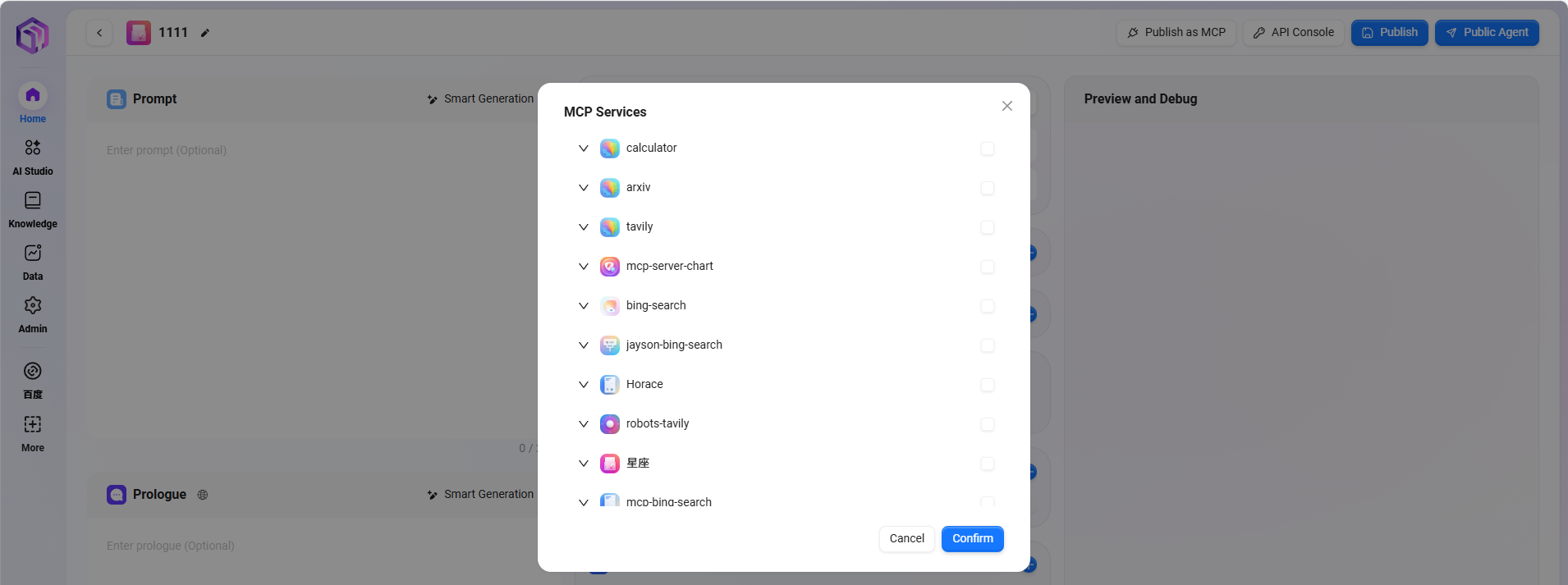 1. 在 AI Studio 页面左侧,点击 "MCP" 进入 MCP 页面;
