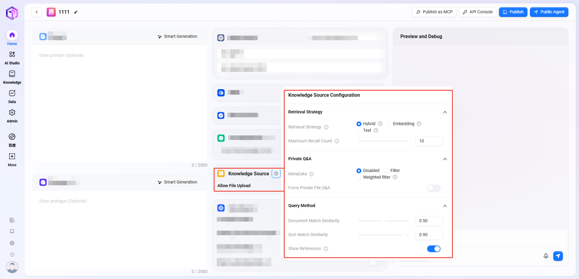 💡 提示:不论是最大召回数量、文档匹配近似度,还是 QnA 匹配近似度,都不是越高越好或越低越好,建议根据实际需求进行设置。如无特殊需求,建议保持默认值。