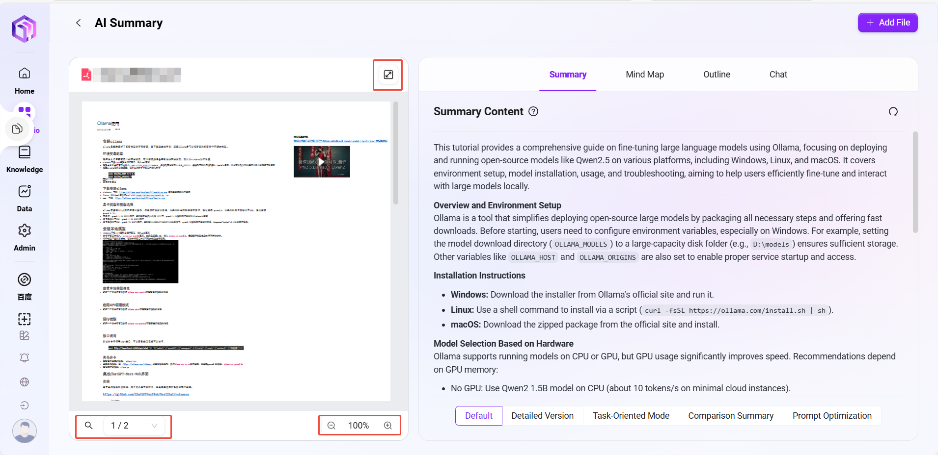 - 添加文件:支持从本地添加新的文件进行AI摘要