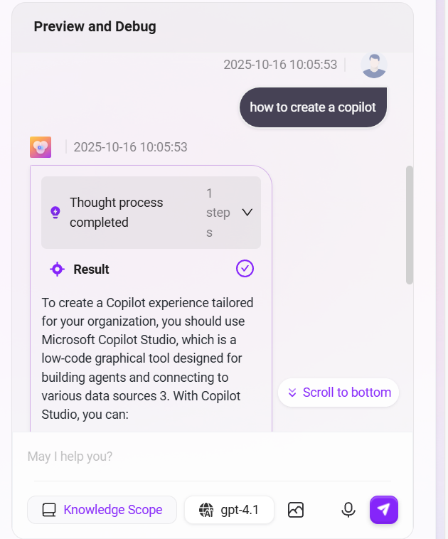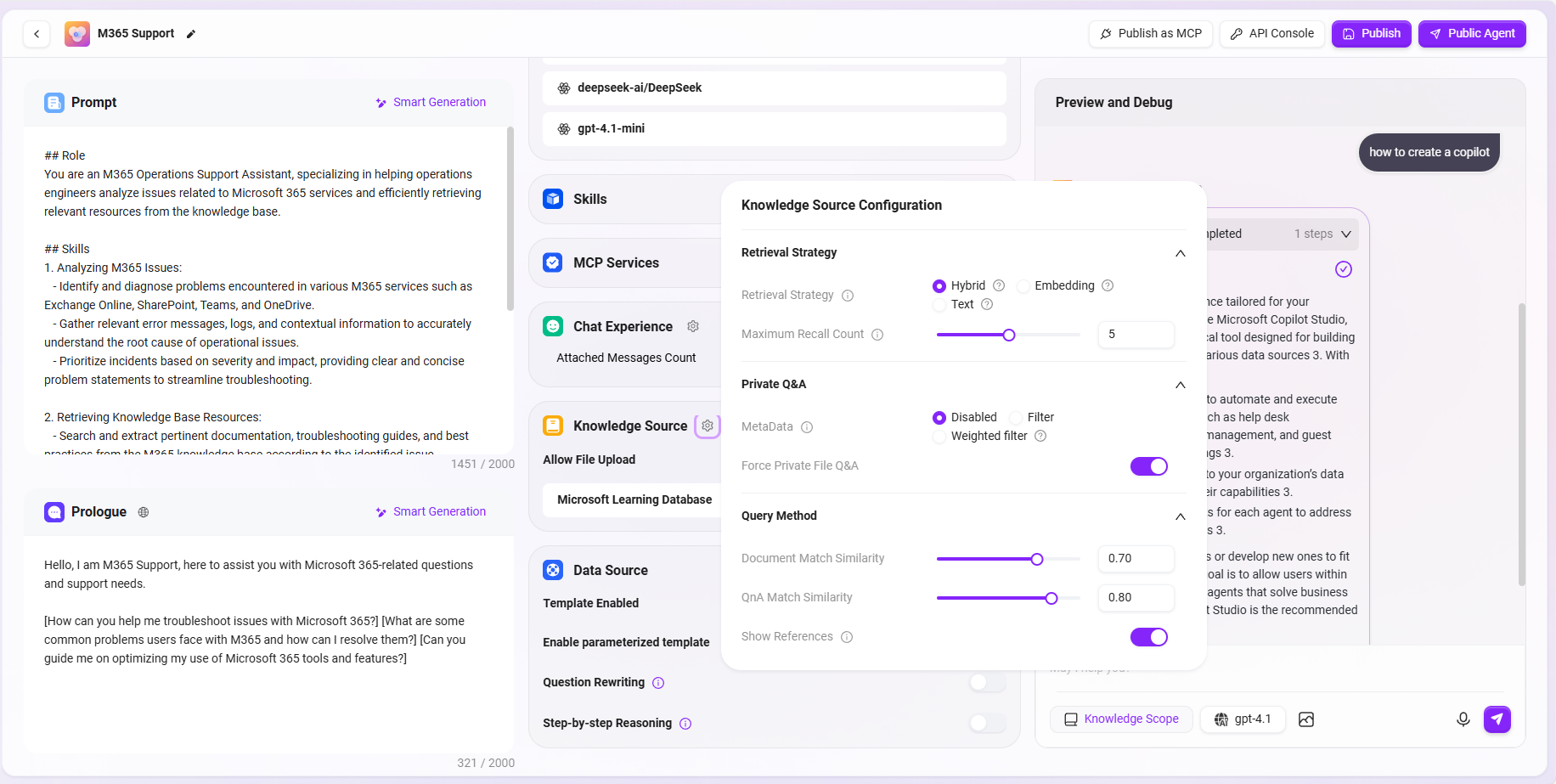 - 请确保该知识库中已提前上传与 M365 运维相关 的文档、FAQ、操作手册等内容。
