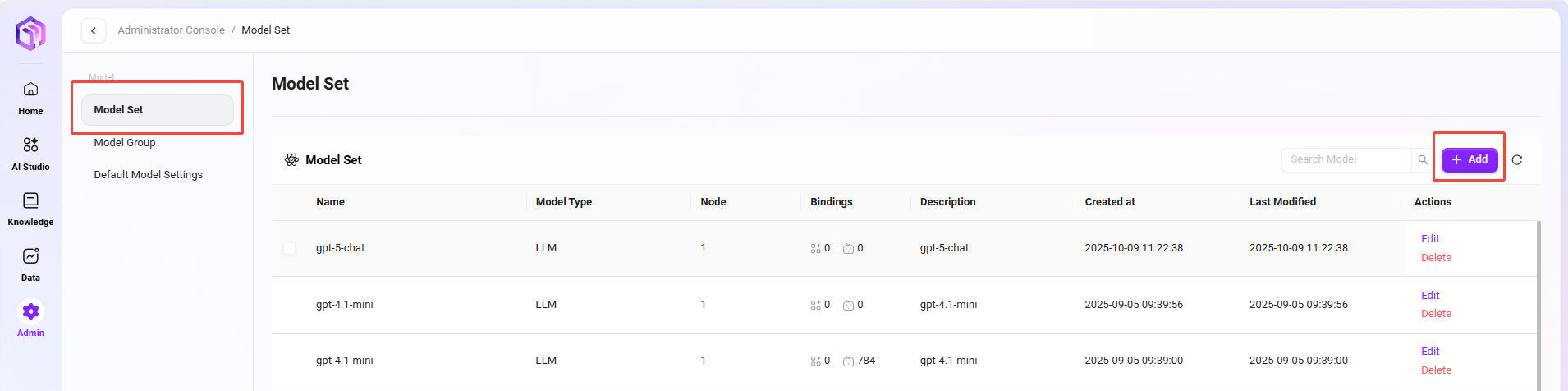 - 导航到模型集管理页面:进入模型管理,然后点击“模型集”。