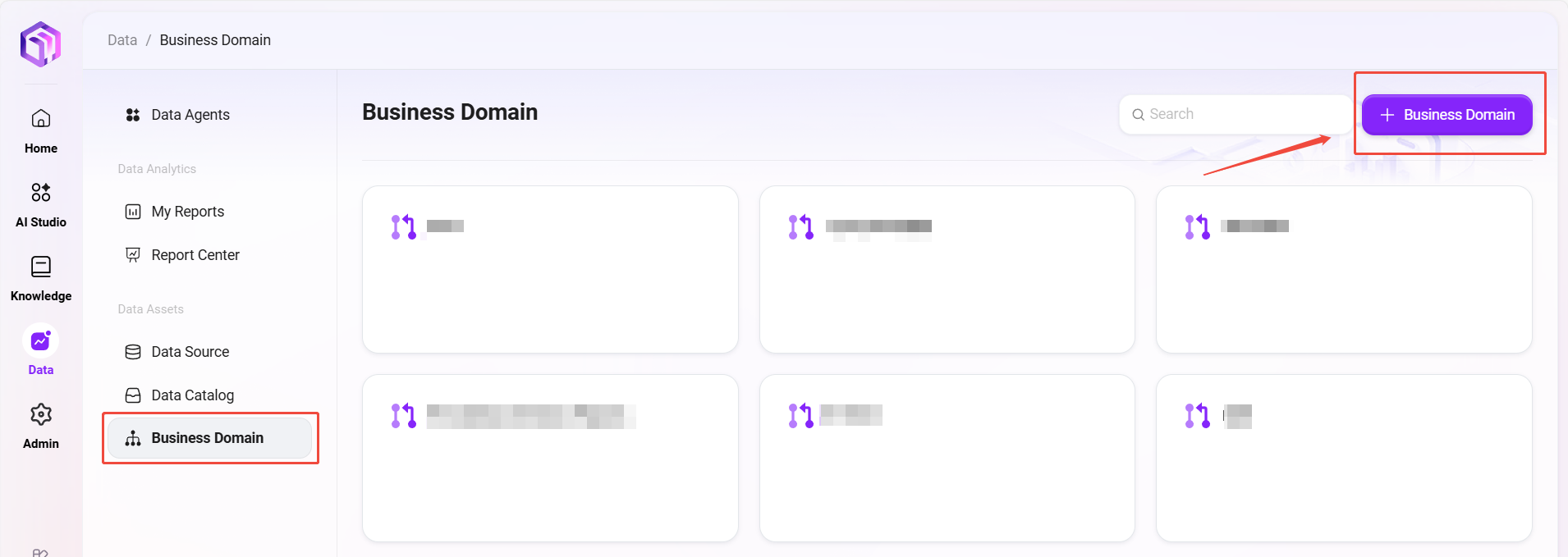 - 在系统的 Data 模块中,点击左侧菜单栏中的“业务域”。