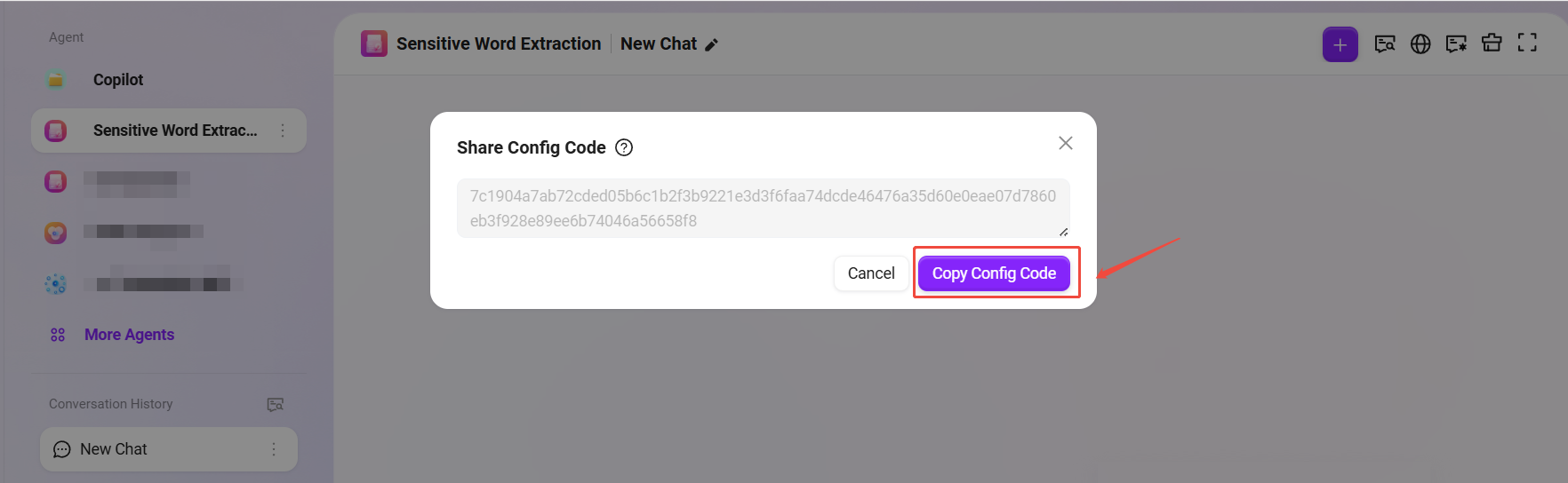 使用配置码快速创建“Sensitive Word Extraction”Agent