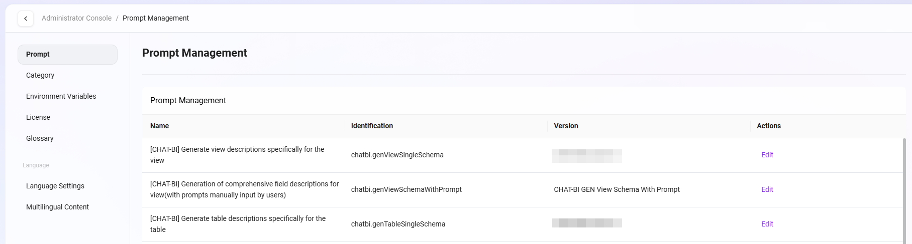 chatbi.genViewSchemaWithPrompt。 - 当前生效版本:该功能点当前正在使用的提示词版本。