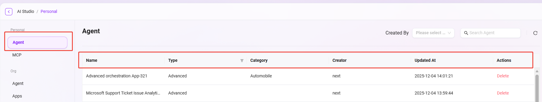- 选择要删除的智能体:在智能体列表中选中需要删除的项。