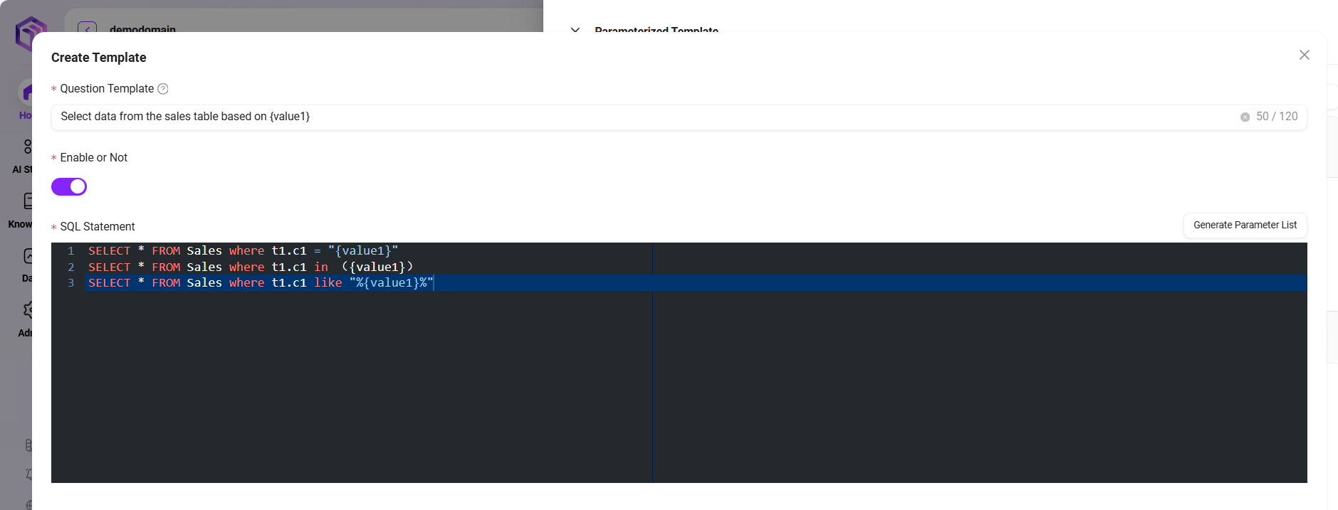 支持创建带有参数化变量的 SQL 模板,用于灵活应对不同场景下的数据查询需求。