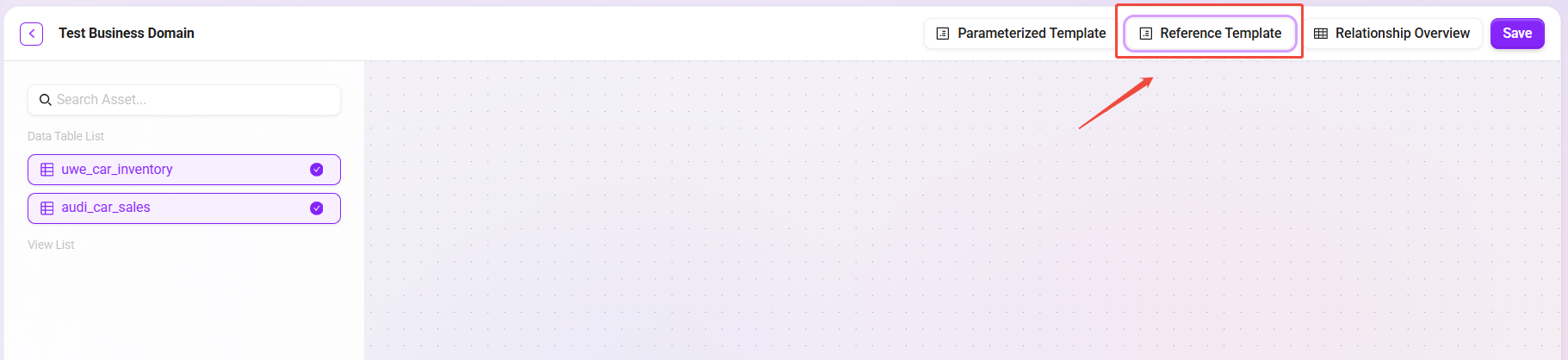 - 创建完成后,即可进入业务域管理界面。可以开始在礼貌添加数据表、定义关系、创建参数化模板和参考模板。