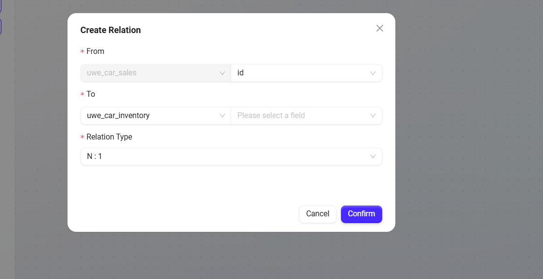 - 选择关系类型:一对一、一对多、多对一、多对多;