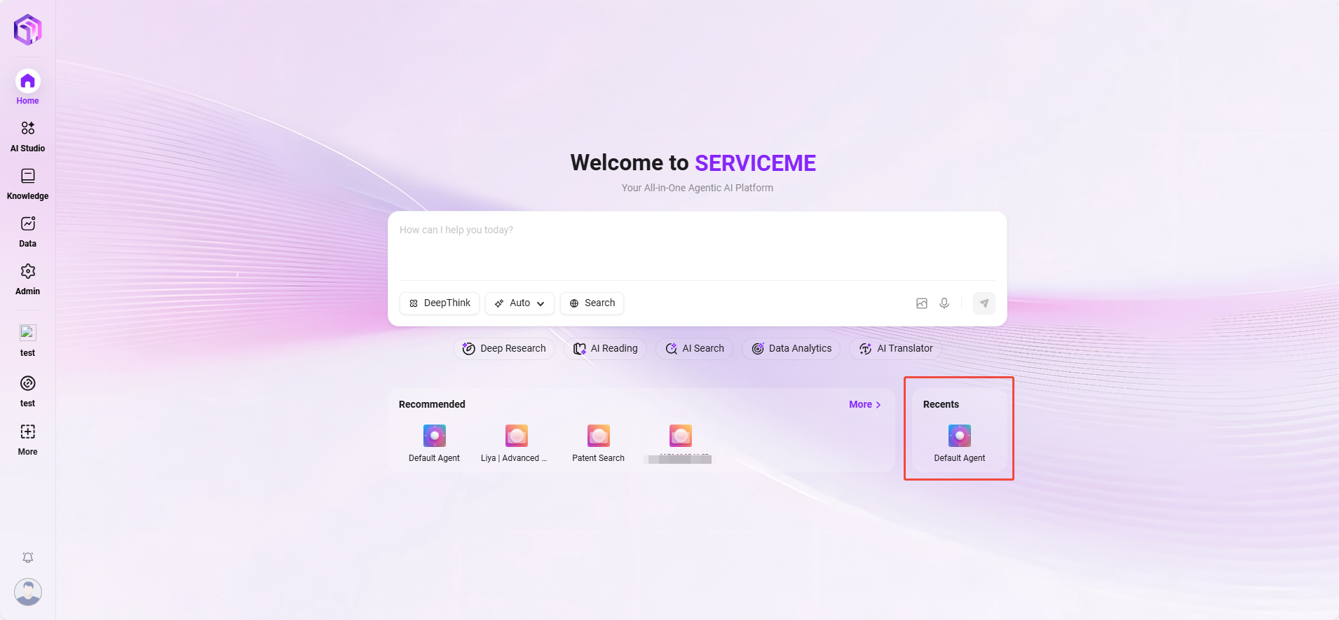 - 展示用户近期使用的智能体或任务,支持快速回到上次的工作场景。