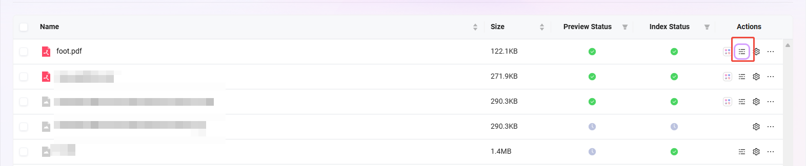 文件上传并且索引成功后,会有一个预览的流程,状态为预览成功即可查看预览。