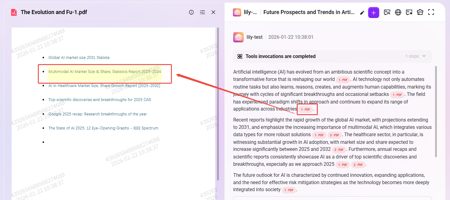 - 功能说明:系统支持解析 PDF、Word、Excel、PPT 文档中嵌入的超链接,并在RAG问答回复中将其渲染为可点击链接,方便用户直接访问原文或引用来源。