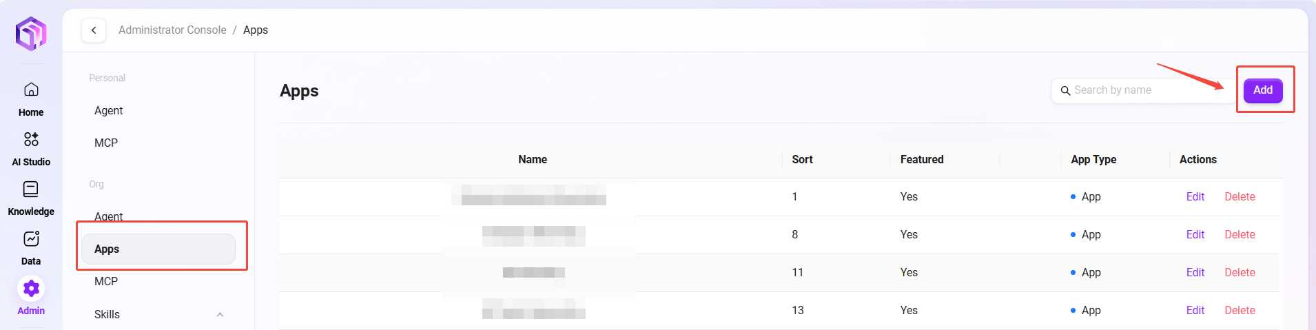 Organization Studio is the core platform for unified management of enterprise-level AI resources. It supports centralized configuration, deployment, and permission management of intelligent components such as Agents, APPs, MCPs, and Skills, achieving maximum resource sharing and reuse.