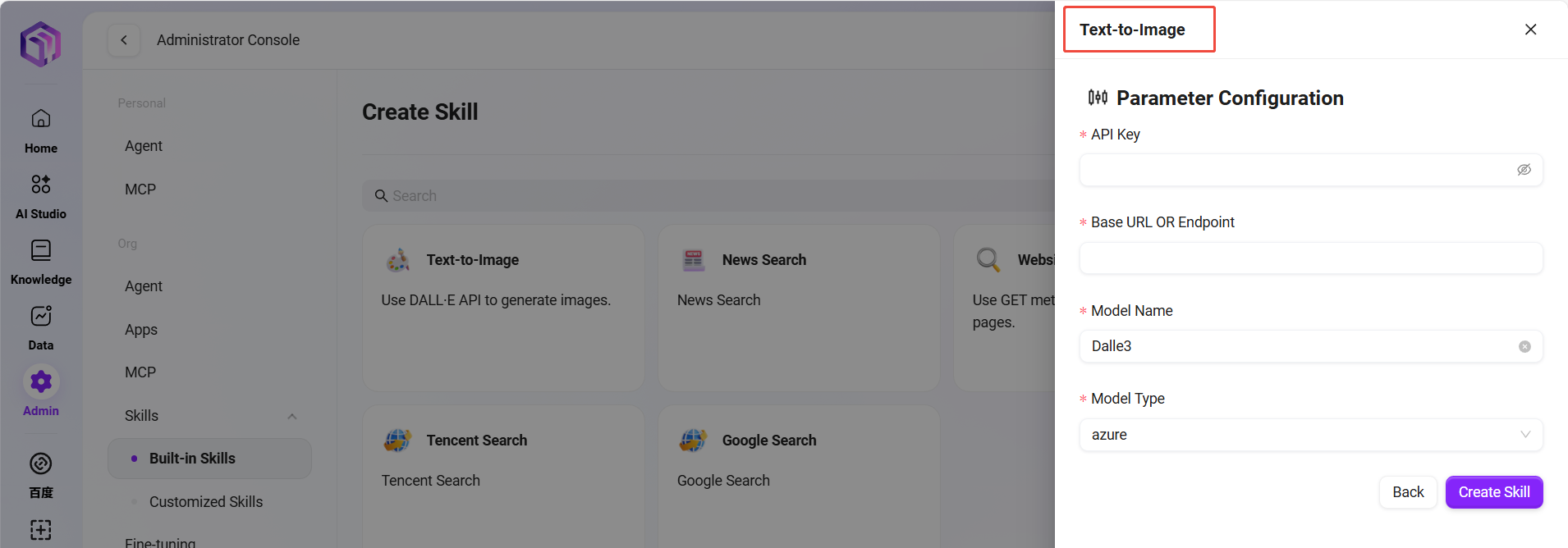 - Built-in Skills: Use system-preinstalled, ready-to-use standardized skills.