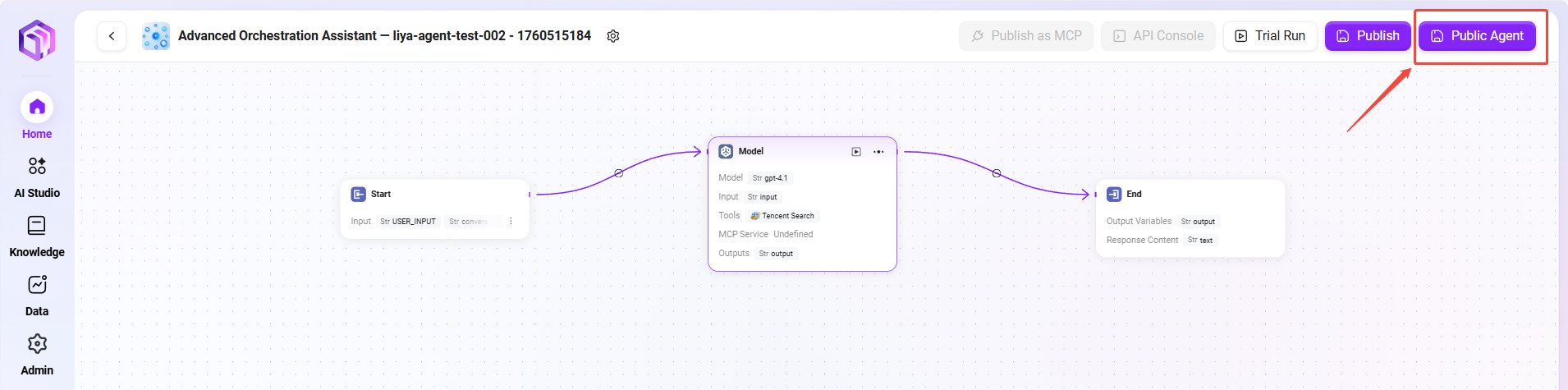 💡 Tip: When a personal Agent is made public as an organization Agent, the Agent will be migrated to the organization Agent interface, and ownership will be transferred to the organization. If you do not have Agent management permissions, you will not be able to continue editing the Agent. To obtain editing permissions, please contact the administrator to apply for access.