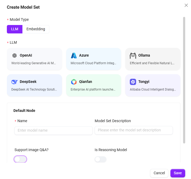 - When purchasing Embedding models, ensure their output vector dimension is less than 2000 (some models can be adjusted in configuration);