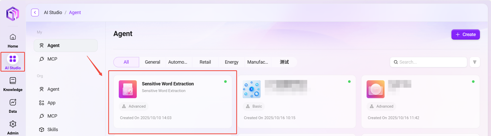 Quickly Create the “Sensitive Word Extraction” Agent Using Configuration Codes