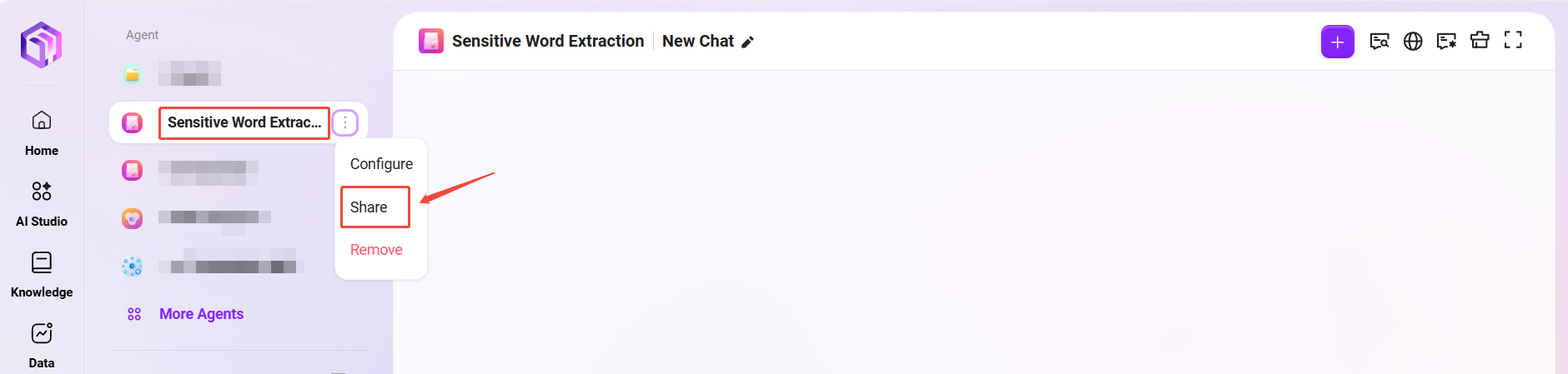 - Find and click the assistant you want to share. In this case, click the "Sensitive Word Extraction" assistant.