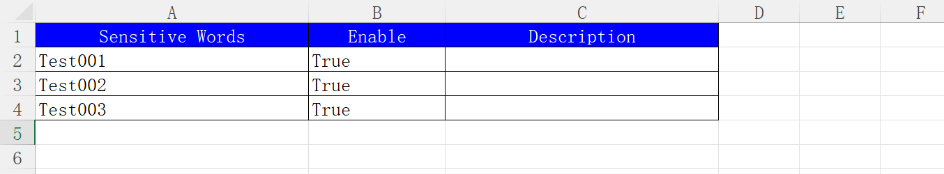 Sensitive Word(required)Enabled(Yes / No)Description(optional)