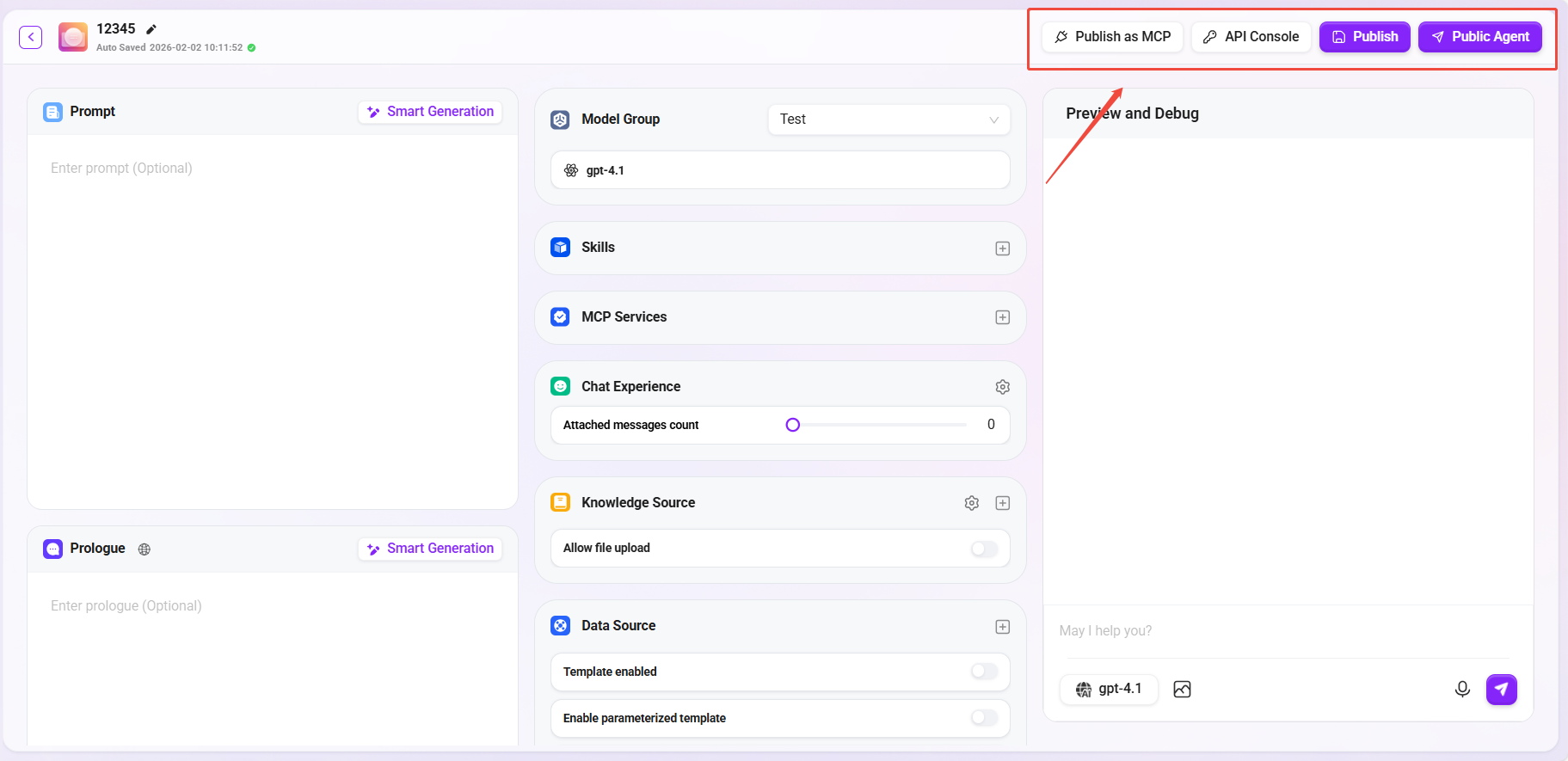 - Publish: After configuration and preview are correct, click Publish to save the configuration, and the agent can be officially put into use.