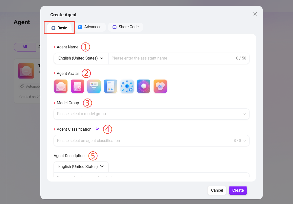 ① Assistant Name: Enter the name of the assistant, which will serve as its identifier (within 50 characters).