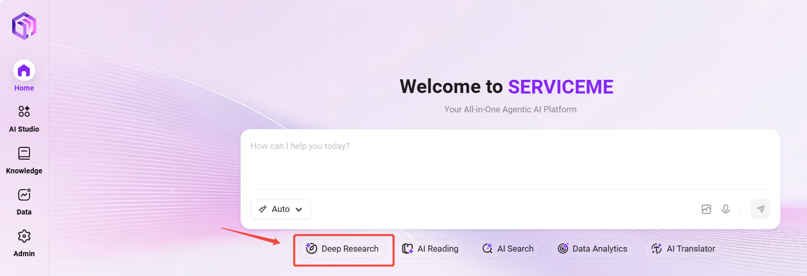 - Method 1: Click "Deep Research" below the input box on the Home page;
