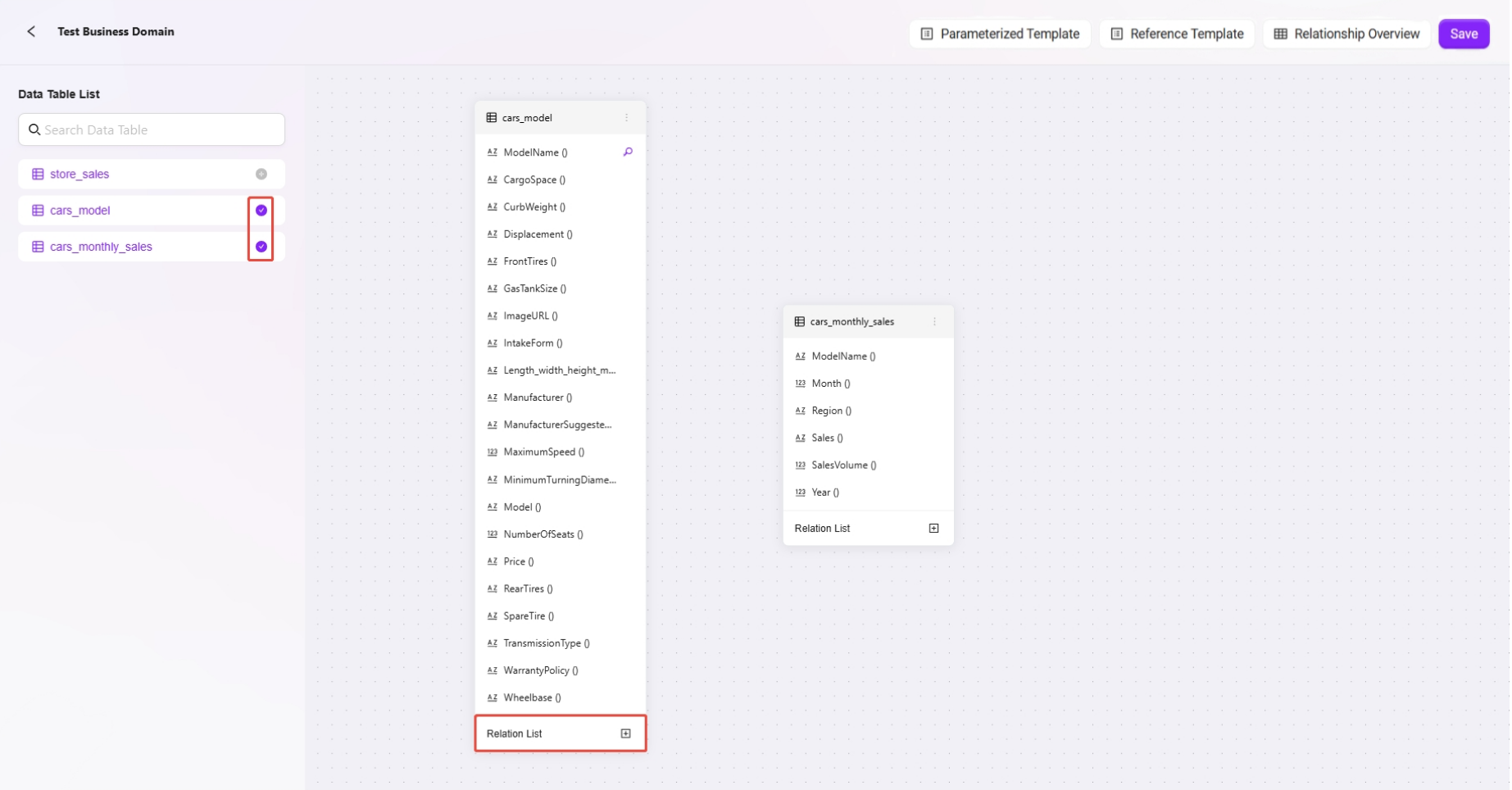 In this way, users can build a complete data relationship network within the business domain, facilitating subsequent intelligent queries and chart generation.