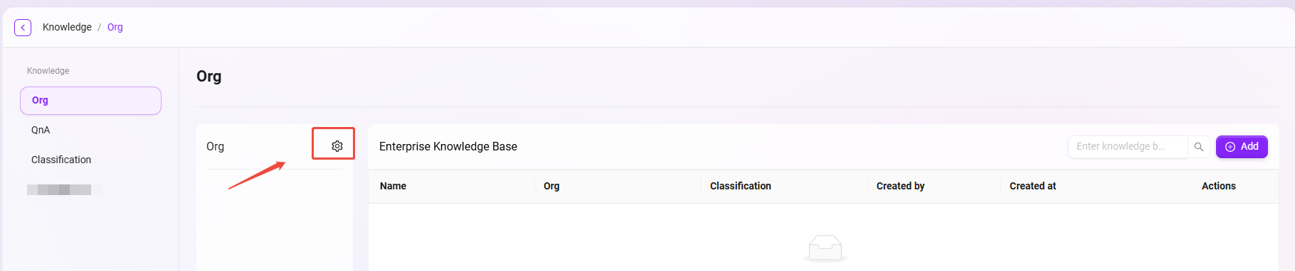 - First, navigate to "Management -> Knowledge Base -> Enterprise Space", and click the “⚙️” next to Enterprise Space;