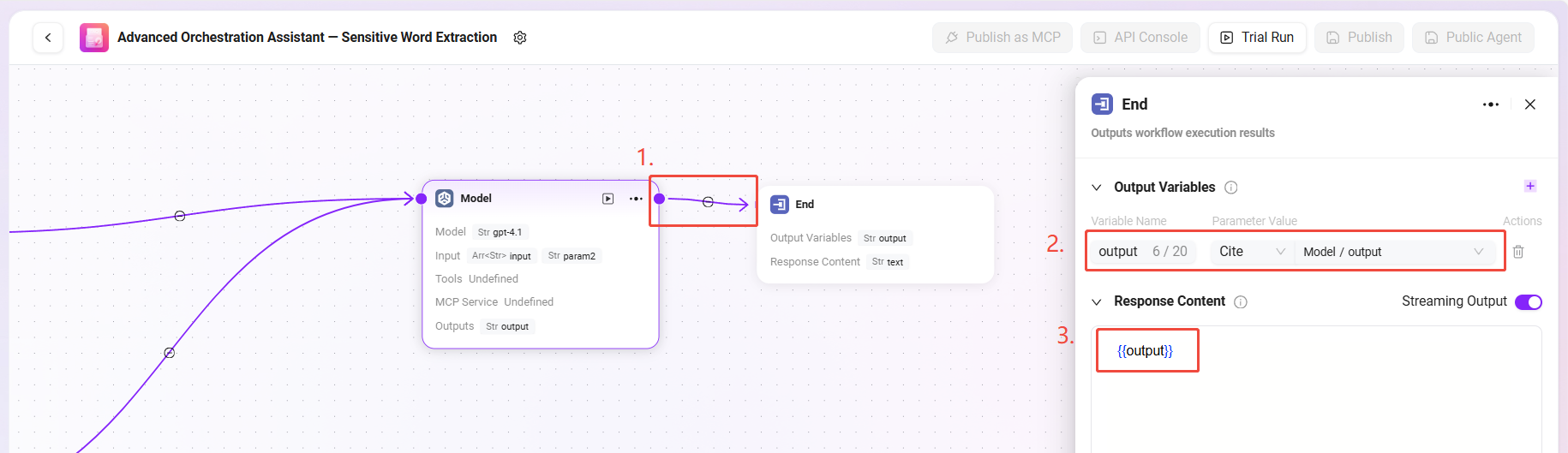 「Sensitive Word Extraction」Agentの設定