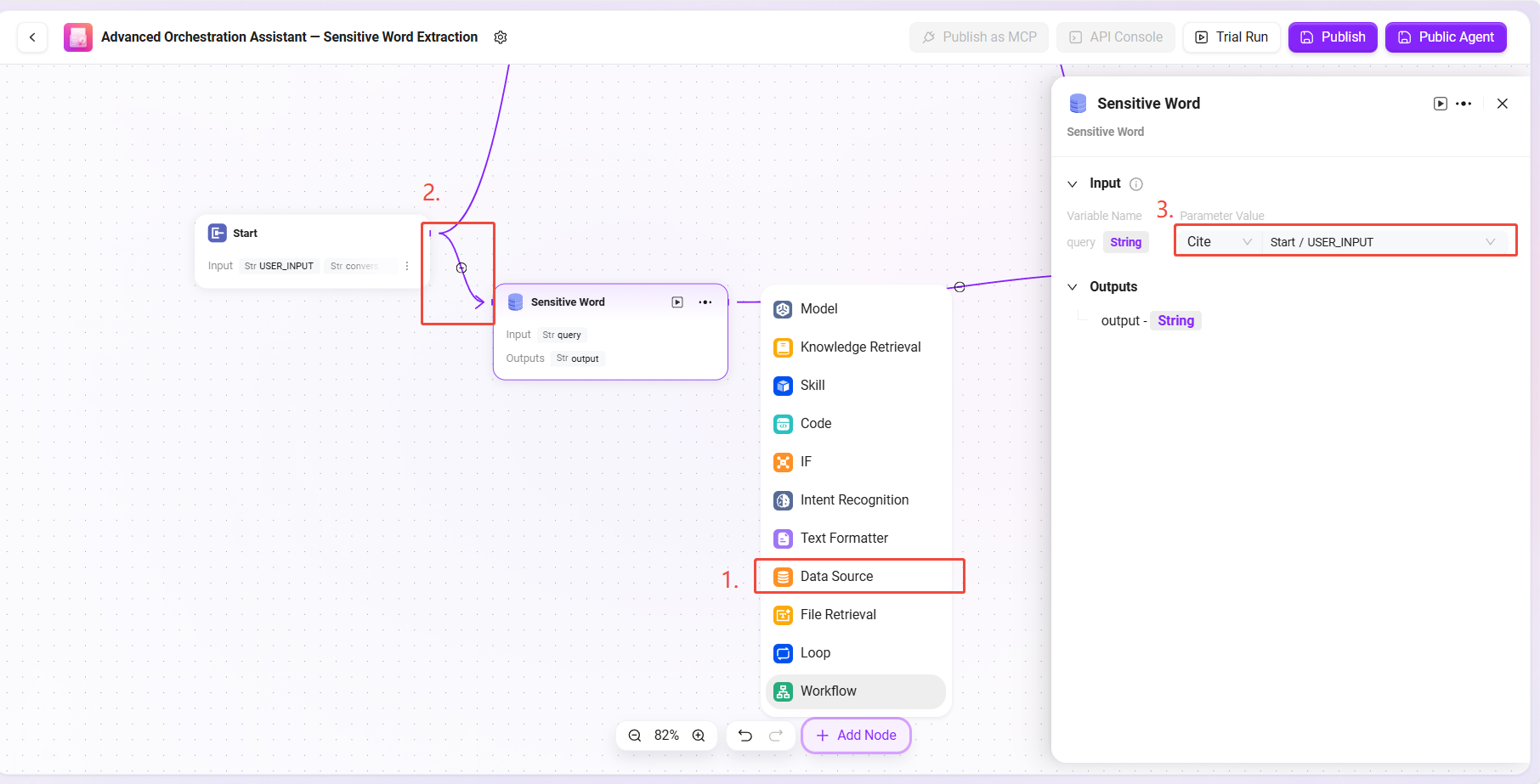 ワークフロー方式で「Sensitive Word Extraction」Agentを作成する