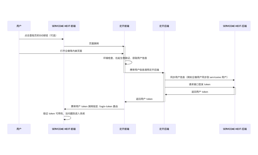 SERVICEMEフロントエンドはこのTokenの信頼性を検証し、合格すればシステムにログインします。