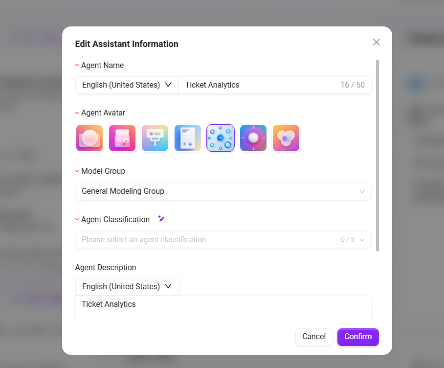 データソースの接続が完了したら、通常の方法でインテリジェントAgentを作成し、チケットデータの自動分析と集計を行います。