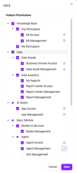 - その役割の右側にある 機能権限 ボタンをクリックし、機能権限ページに入ります。