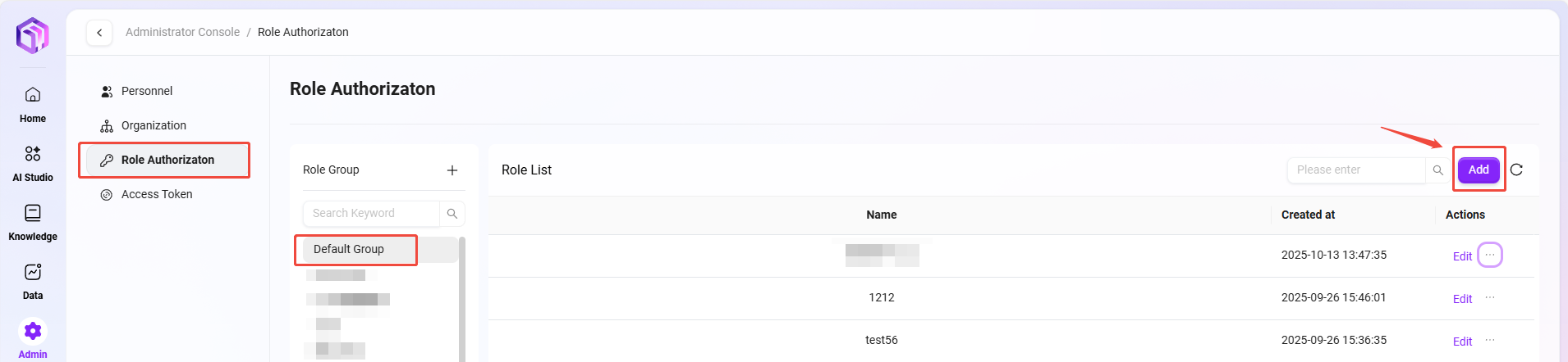 役割権限管理では、管理者が新しい役割グループを作成できます。役割グループ作成後、管理者はそのグループ内に新しい役割を作成し、権限を付与できます。