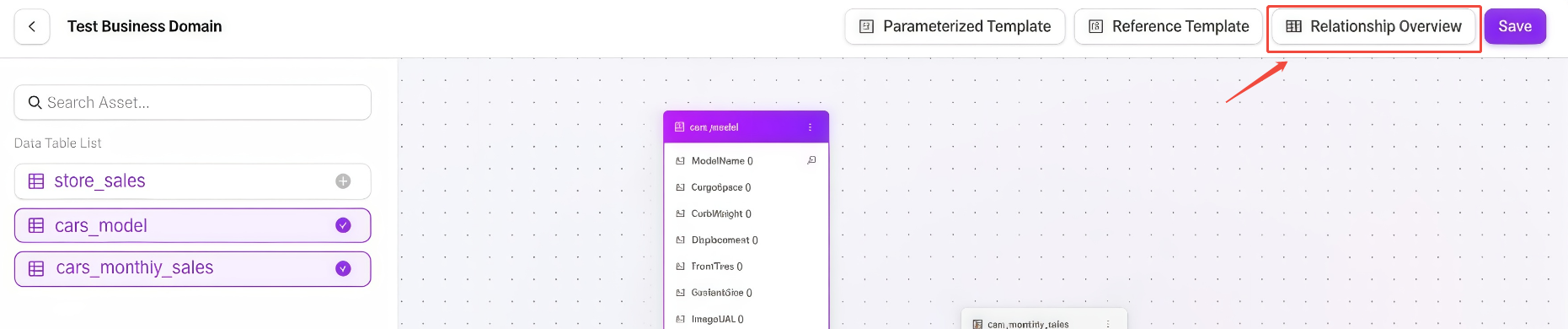 この方法により、ユーザーはビジネスドメイン内で完全なデータリレーションネットワークを構築でき、後続のインテリジェントクエリやチャート生成が容易になります。