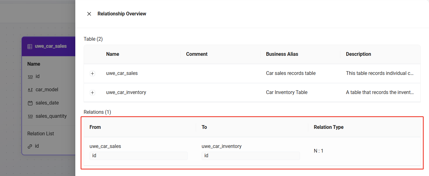 - 提出後、2つのテーブル間のリレーションが確定されます。
