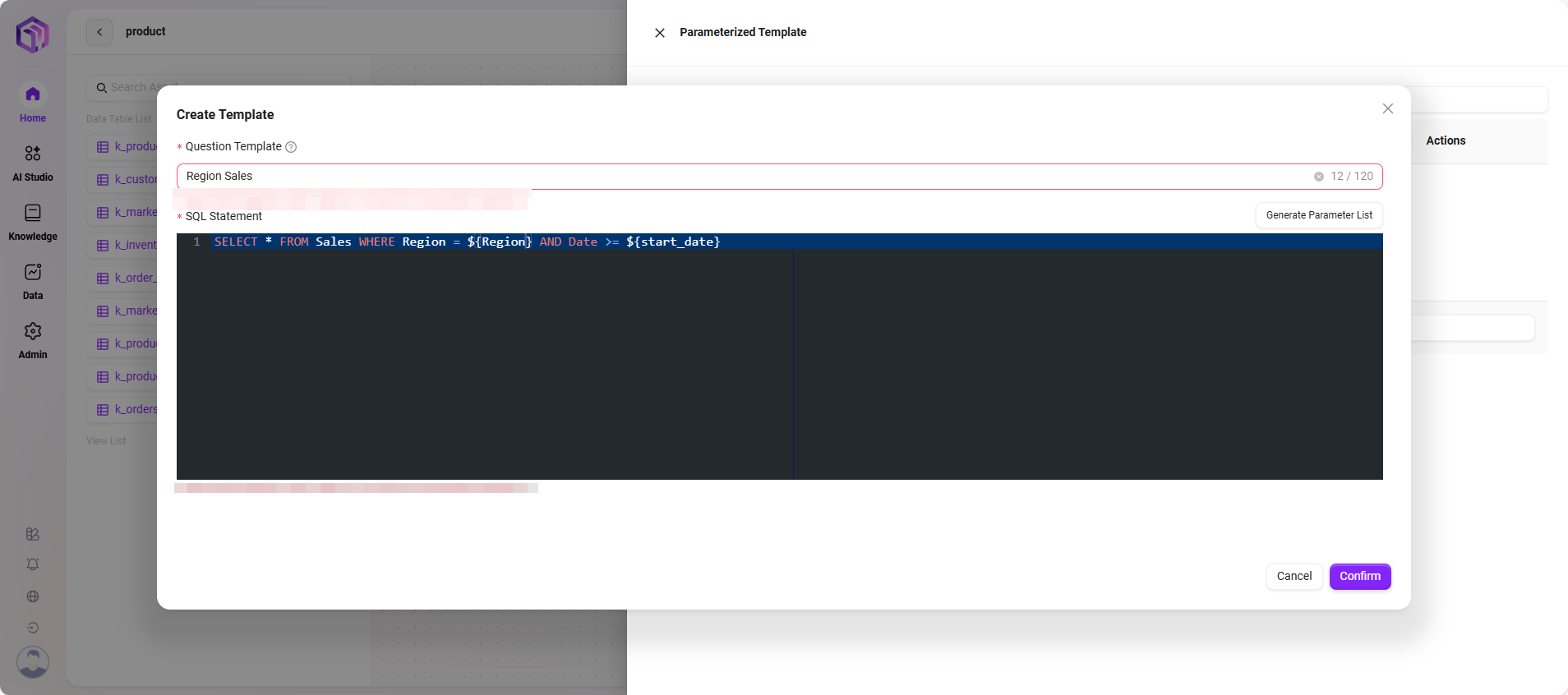 パラメータ変数を含むSQLテンプレートの作成をサポートし、さまざまなシナリオでのデータクエリニーズに柔軟に対応。