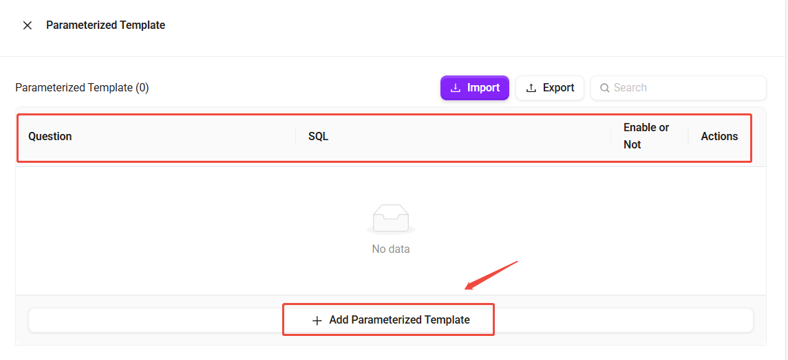 異なる環境(開発、テスト、本番など)間でのクエリテンプレートの移行またはバッチ展開を容易にするため、システムはパラメータ化テンプレートのインポートとエクスポートをサポートします。