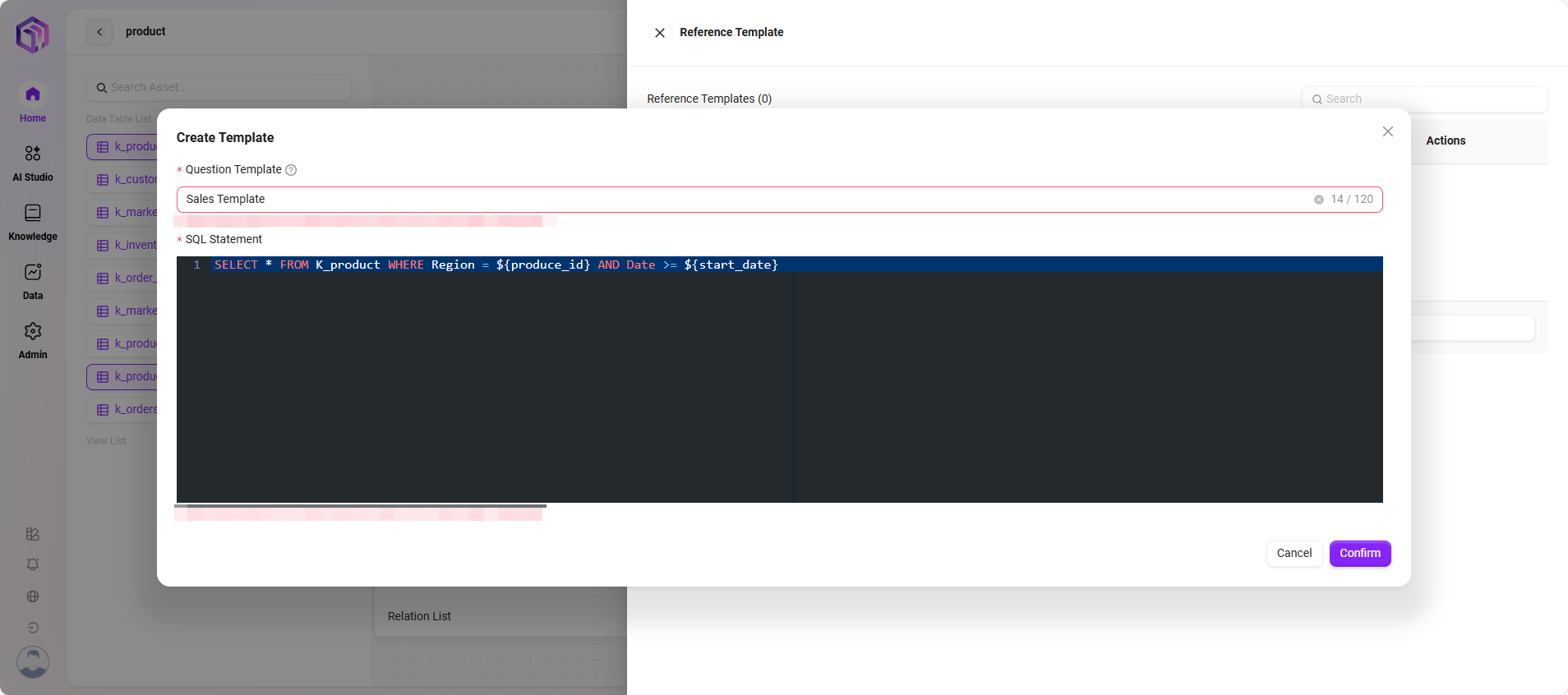 - 参考テンプレートを基にコピー、修正、保存が可能で、個別化されたデータリレーションモデルを迅速に構築;