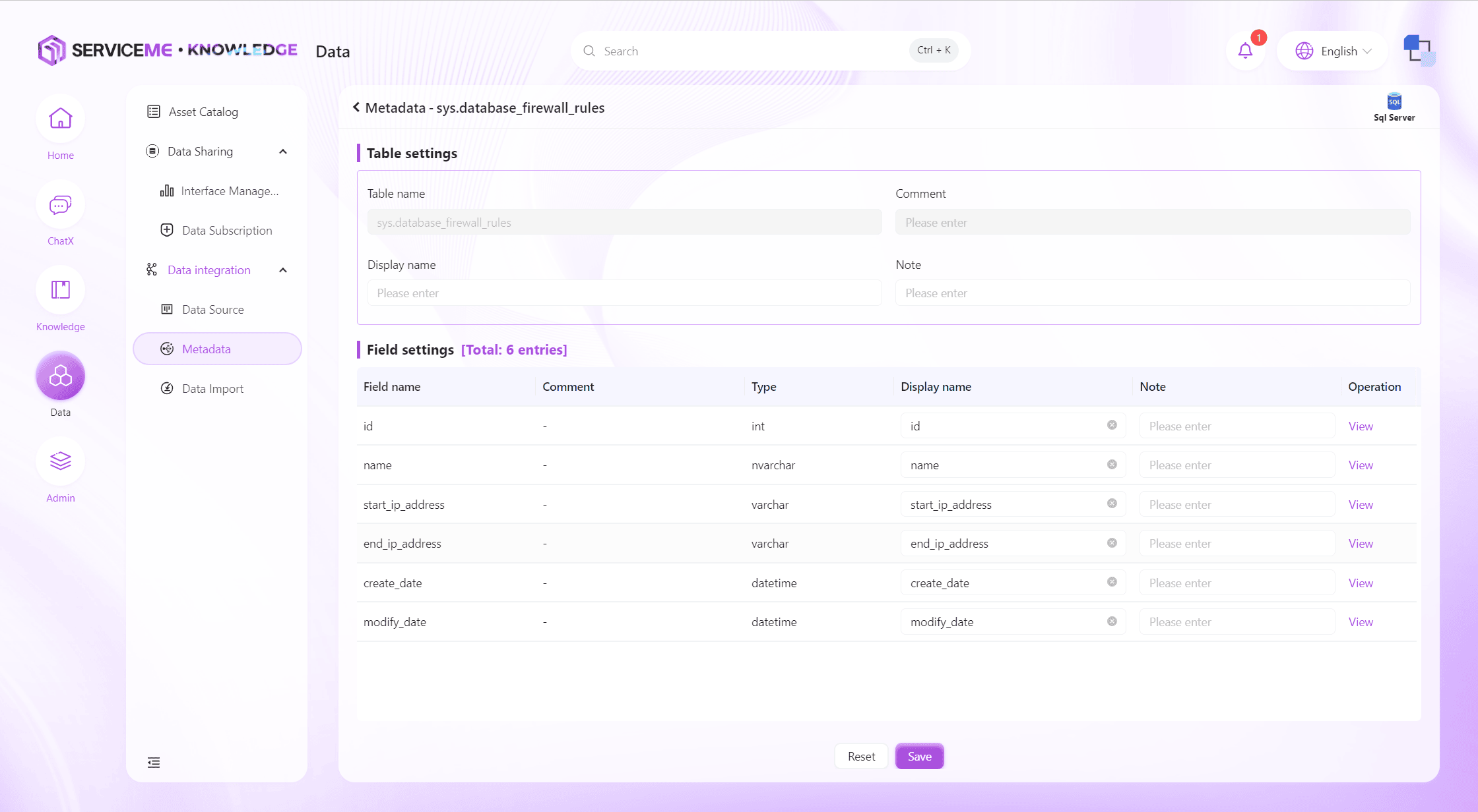 - 検索:エンティティ名/表示名/データソースなどでメタデータをフィルタリング