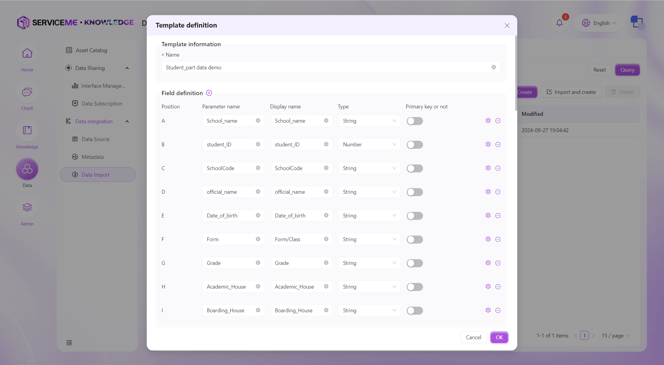 システムはシートの1行目をもとにテンプレートのフィールド情報を決定し、各列の型を推定します。インポート後の操作は手動作成と同様です。
